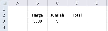 D3 yang akan menyimpan hasil perhitungan dari sel B3 serta sel C3, dan berikutnya Anda tinggal menuliskan formula yang sesuai pada sel D3 tersebut.