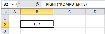 Maka hasilnya sel B2 tersebut akan menampilkan kata TER, yaitu 3 karakter pertama dari arah kanan pada kata KOMPUTER seperti tampak pada gambar berikut ini.